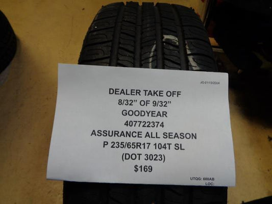 DTO 8/32" OF 9/32" GOODYEAR ASSURANCE A/S P 235 65 17 104T SL TIRE 407722374 CQ1