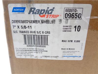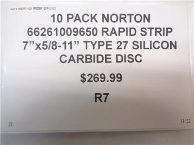 10ct NORTON 66261009650 RAPID STRIP 7x5/8-11" TYPE 27 SILICON CARBIDE DISC