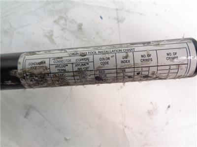 CRIMP TOOL IS NEW AND UNUSED AND IN GREAT CONDITION. HAS DAMAGE ALONG HANDLES AND RIPS ALONG INFO STICKERS DUE TO SHIPPING AND HANDLING. ONLY COMES WITH WHAT IS PICTURED, SEE PICS FOR MORE INFO.