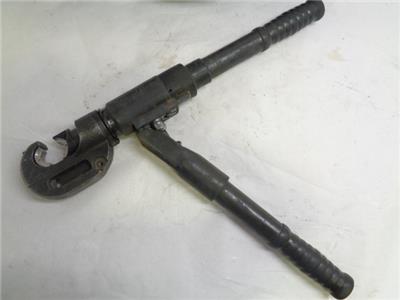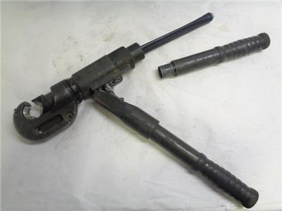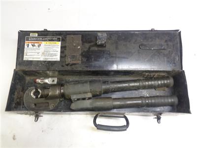 CRIMPING TOOL IS USED AND IN FAIR CONDITION. MAIN HANDLE DETACHES FROM THE CRIMPING SHAFT TO REVEAL HOSE. SHOWS SIGNS OF WEAR SUCH AS SCRATCHES, SCUFFS, AND DENTS. PROTECTIVE PAD IN CASE IS TORN OFF. ONLY COMES WITH WHAT IS PICTURED, SEE PICS FOR MORE INFO.