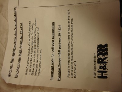 FOR SALE IS A BEAUTIFUL SET OF H&R 29413-1 SHOCKS & SPRINGS KIT FITS A HYUNDAI TIBURON MODEL YEARS 1997-2001 AND 2003-2008 NEW HD. THIS GOT SCUFFED FROM SHIPPING BUT ARE NEW AND NEVER INSTALLED.