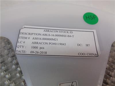 NEW ABRACON CRYSTAL 16.0000MHZ 18PF SMD 1000PC. ABLS-16.000MHZ-B4-T
