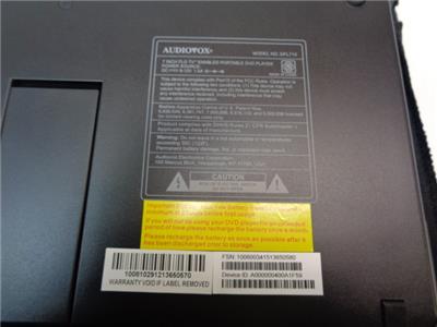 7-inch Audiovox DFL710 Widescreen Portable DVD Player Manual AV cable Car power adapter AC adapter (Input: 100 - 240V ~ 50/60Hz, 0.5A / Output: 9V, 1.5A)