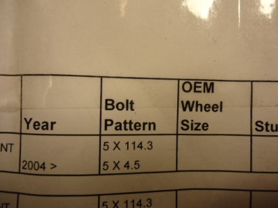 BOLT PATTERN: 5X114.3