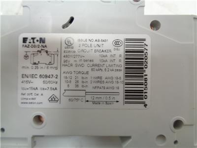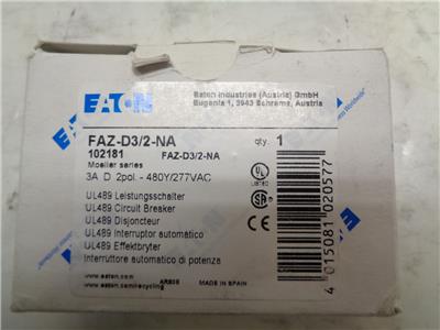 NEW EATON FAZ-D3/2-NA CIRCUIT BREAKER 102181