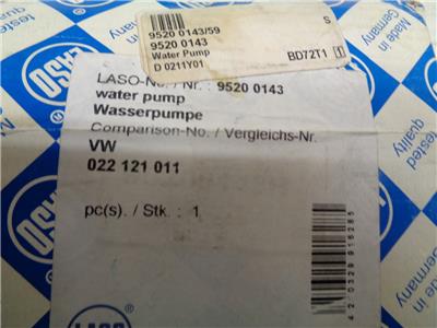 NEW LASO WATER PUMP FOR VOLKSWAGEN/AUDI 022 121 011 9520 0143