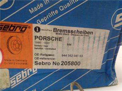 SEBRO REAR BRAKE ROTOR FOR PORSCHE 944 S2 85-88 944 352 041 03