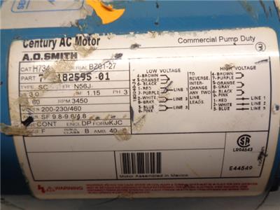 SULZER COMMERCIAL PUMP DUTY W/ CENTURY AC MOTOR 3HP 3PH 60HZ 7-18259501